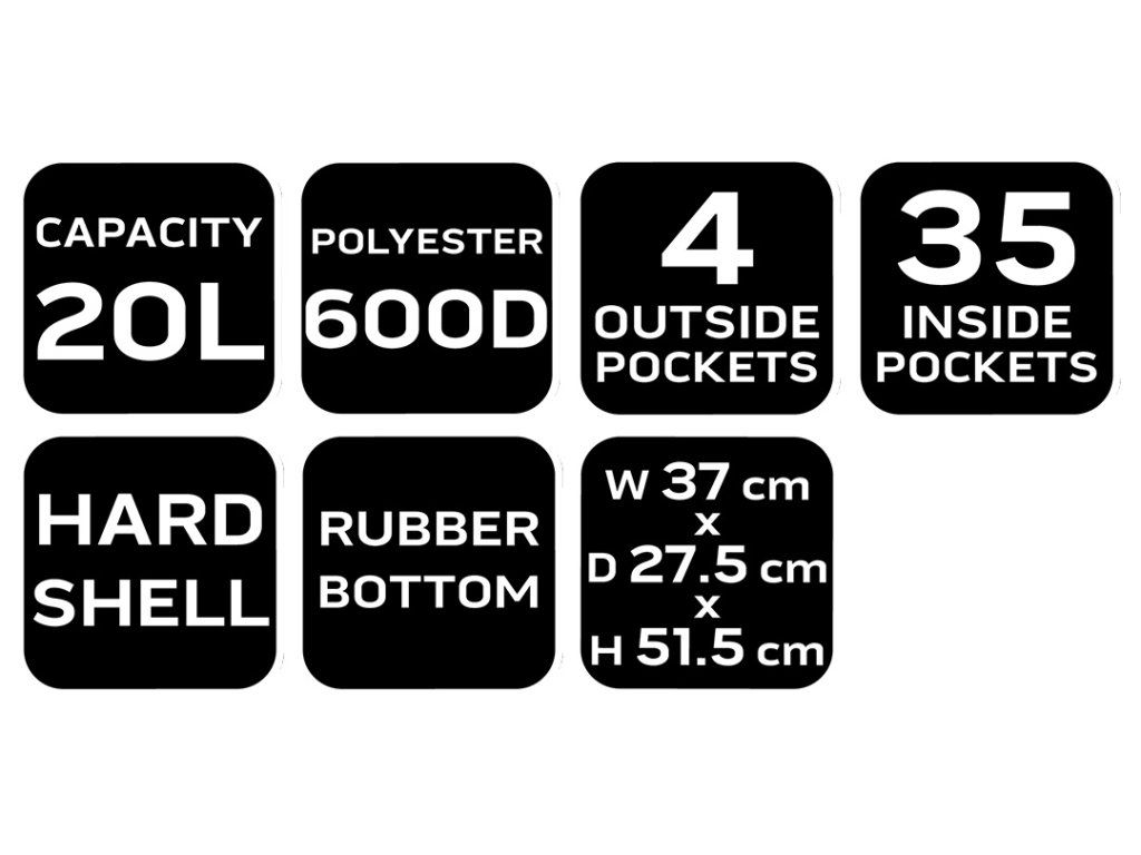 Batoh na nářadí NEO, s výztuhami 84-329 od společnosti NEO TOOLS je prostorný a robustní batoh s dalšími výztuhami pro mnoho použití. Vyznačuje se objemem až 20 litrů a rozměry: Jeho šířka je 370 mm, hloubka 275 mm a výška 515 mm. Má hlavní prostor se 4 vnějšími a 35 vnitřními kapsami, které nabízejí úložný prostor pro mnoho nástrojů nebo příslušenství. Díky pogumované základně a pevnému rámu poskytuje stabilitu a bezpečnost. Polyesterový materiál 600 D chrání obsah batohu před vlhkostí a vnějším znečištěním. Batoh na nářadí NEO TOOLS doporučujeme profesionálům i kutilům.Doplňkové parametry