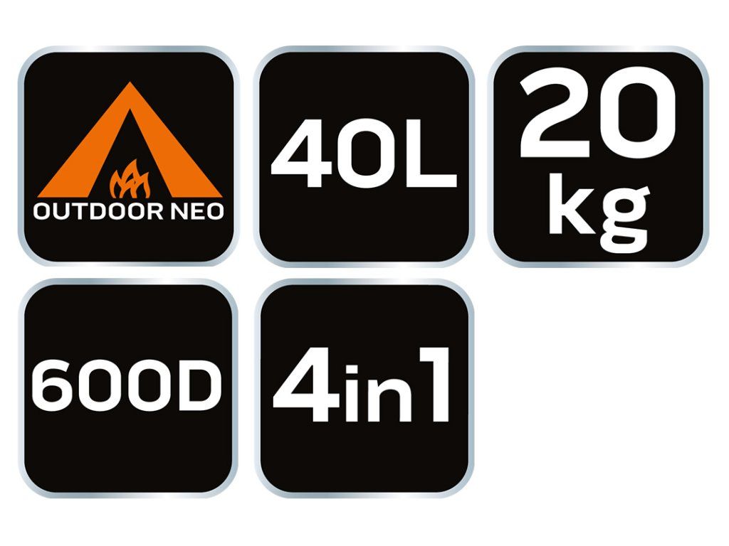 Batoh pro přežití NEO (ref. 84-326) o objemu 40 litrů. Je pohodlný a prostorný, ideální na několikadenní výpravy. Má nastavitelné ramenní popruhy, bederní pás a hrudní pás. Výrobek 4 v 1 - batoh se dodává se 2 malými bočními vaky a 1 středně velkým vakem umístěným uprostřed. Všechny přídavné tašky jsou odnímatelné, střední taška má navíc popruh přes rameno.