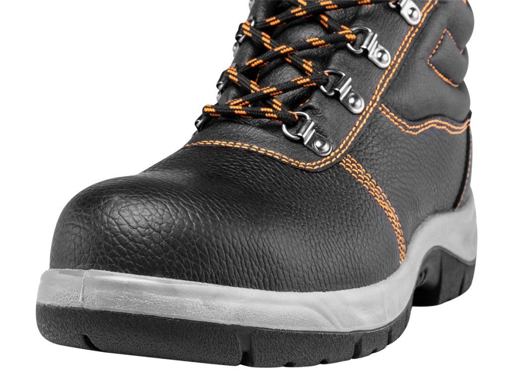 Kožená obuv S1 SR FO, ocelová špička, velikost 40, 82-165-40 od NEO TOOLS je profesionální obuv, která chrání nohu při práci. Vyznačují se svrškem z reliéfní štípané kůže, kovovými poutky a dvojitým a trojitým prošíváním, které zpevňuje konstrukci. Ocelová špička poskytuje ochranu proti nárazům s energií odpovídající 200 J. Boty NEO TOOLS mají zabudovanou patu a odolnost vůči olejům, benzínu a dalším organickým rozpouštědlům (FO). Vyznačují se antielektrostatickými vlastnostmi. Absorpce energie v patní části odpovídá klasifikaci bezpečnostní obuvi podle normy EN ISO 20345. Boty jsou k dispozici v mnoha velikostech.
