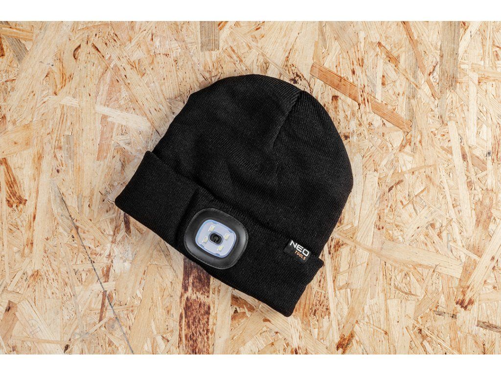 Čepice se svítilnou NEO (81-621) poskytuje světlo, když pracujete, a ponechává vám volné ruce. Je vybavena silným LED světlem a poskytuje možnost regulovat intenzitu světelného výkonu ve třech různých úrovních (100 %, 75 %, 50 %). Svítilna je odolná na stříkající vodu. Nabíjení přes USB umožňuje rychlé a snadno nabíjet baterii.