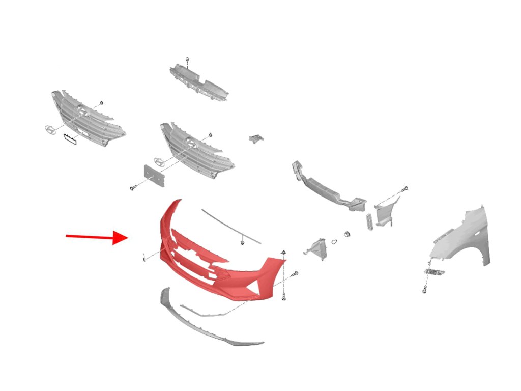 Přední nárazník s otvory pro parkovací senzory PDC (x2), pro HYUNDAI ELANTRA VI (AD) 2018-2020 (verze po faceliftu). Nabízíme také: