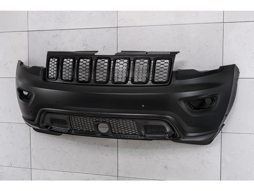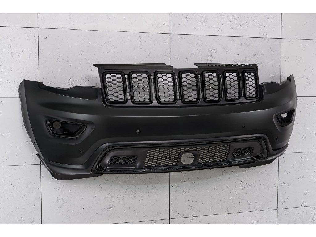 | Přední nárazník s černou mřížkou, určený pro JEEP GRAND CHEROKEE IV (WK2) 2017-2021 (druhá faceliftová verze). Verze s otvory pro parkovací senzory PDC a bez otvorů pro ostřikovače čelního skla. Vhodné pro verze LAREDO, LIMITED, OVERLAND a TRAILHAWK. Sada obsahuje: