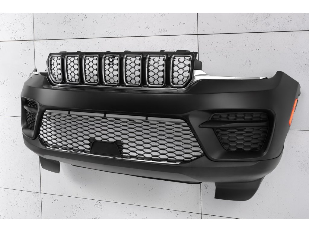| Přední nárazník určený pro JEEP GRAND CHEROKEE V (WL) 2021+. Hodí se pouze pro verzi výbavy SUMMIT. Mřížka má otvor pro přední kameru. Hodí se pro verze pro USA i EU. Vhodná pro verze se spalovacím motorem / vznětovým motorem a hybridní verze. Součástí sady je:
