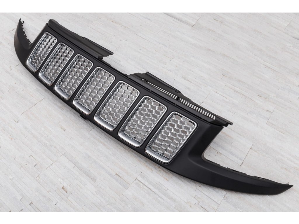 Kompletní přední nárazník s chromovanou mřížkou určený pro JEEP GRAND CHEROKEE IV (WK2) 2014-2017 (první faceliftová verze). Vhodné pro verze LAREDO, LIMITED, OVERLAND, TRAILHAWK. Sada obsahuje: