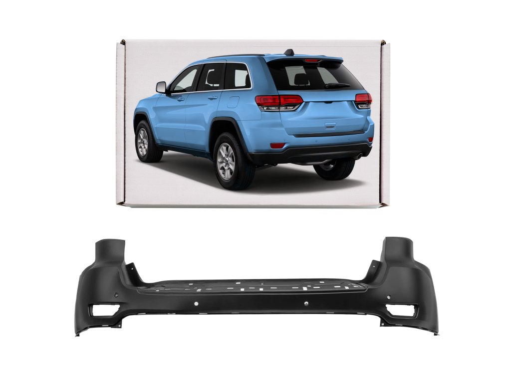 Zadní nárazník, pro JEEP GRAND CHEROKEE IV (WK2) 2014-2020 (verze po faceliftu). Verze s otvory pro parkovací senzory PDC. Nehodí se pro verze SRT a TRACKHAWK. Nabízíme také: