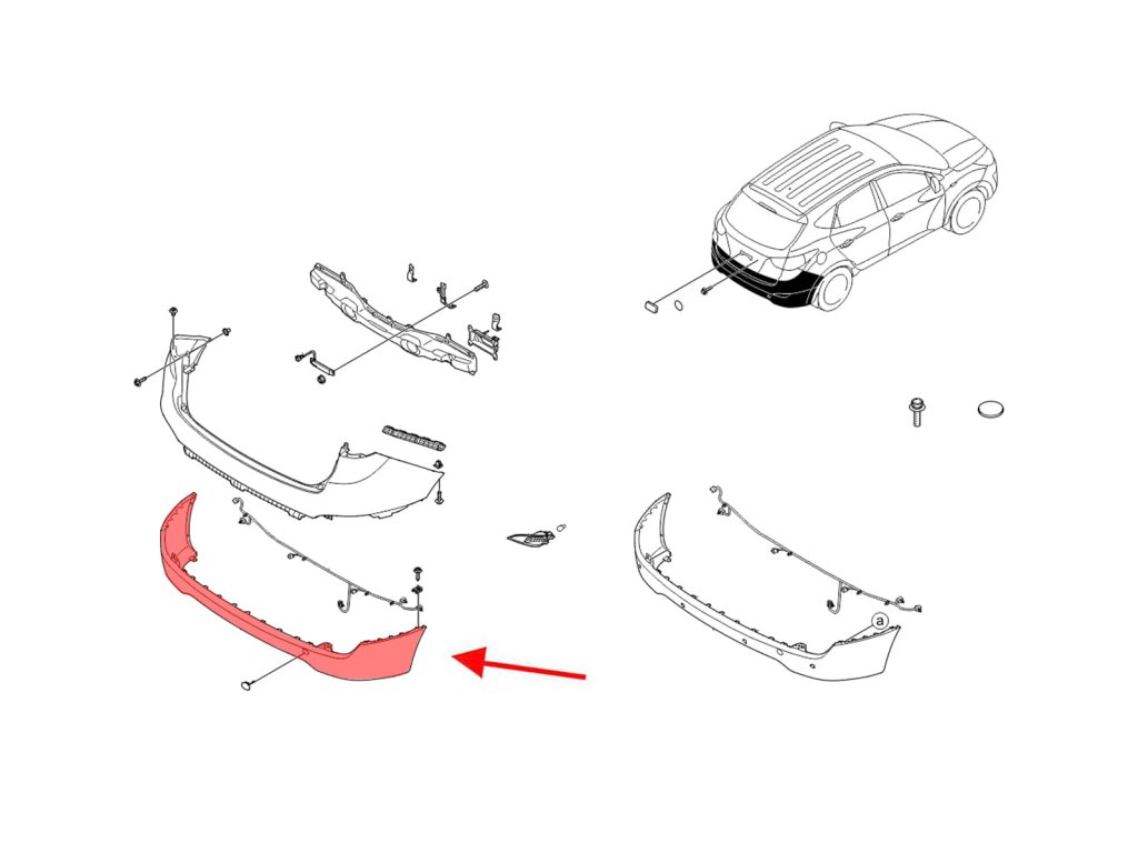 Zadní spodní nárazník, pro HYUNDAI ix35 (LM) 2010-2015. Specifikace: