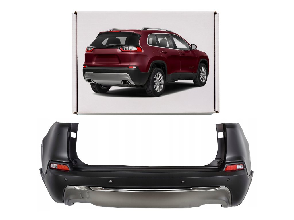 | Zadní nárazník s otvory pro parkovací senzory PDC, pro JEEP CHEROKEE V (KL) 2018-2023 (verze po faceliftu). Výrobek má čtyři otvory pro parkovací senzory PDC. Sada obsahuje: