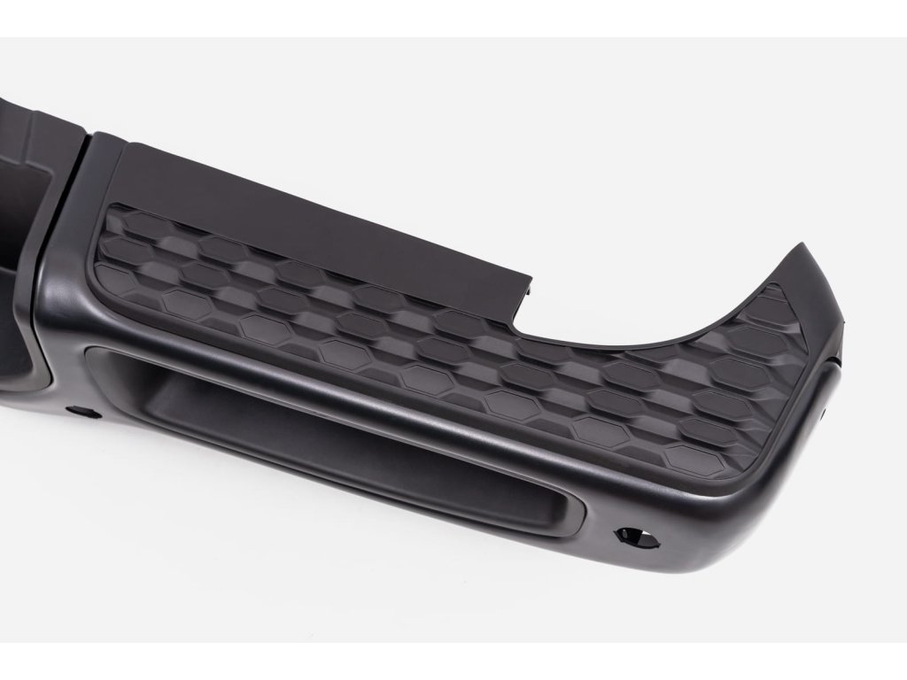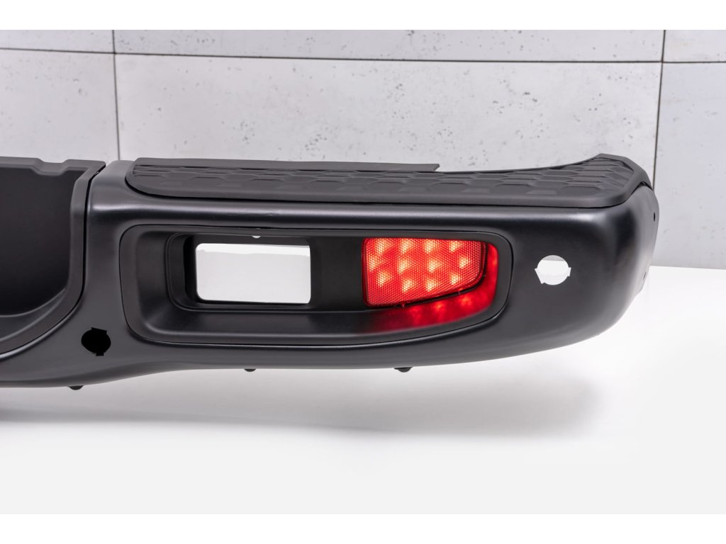 | Zadní nárazník určený pro JEEP GLADIATOR JT 2018+. Verze připravená pro parkovací senzory "PDC". Nárazník má LED mlhová světla a LED osvětlení registrační značky v bílé barvě (určeno pro evropský trh!). Dva červené háčky pro pravou a levou stranu jsou doplňkovým příslušenstvím. Pevná konstrukce, nekompromisní charakter a sportovní nádech - to jsou vlastnosti, které náš výrobek odlišují. Nárazník pomůže zvýraznit terénní duši vozu JT Gladiator. Kromě praktické funkce vám nárazník umožní vytvořit působivý styling vašeho vozu JEEPA. Konstrukce nárazníku umožňuje osvětlení prostoru pod registrační značkou na pravé i levé straně. Produkt je vyroben z vysoce kvalitního automobilového plastu ABS v černé barvě. Rám nárazníku je vyroben z oceli. Díky tomuto řešení je nárazník lehčí než ocelové nárazníky a zároveň dlouhodobě odolný. Sada obsahuje zadní nárazník, dva háky a montážní díly. |