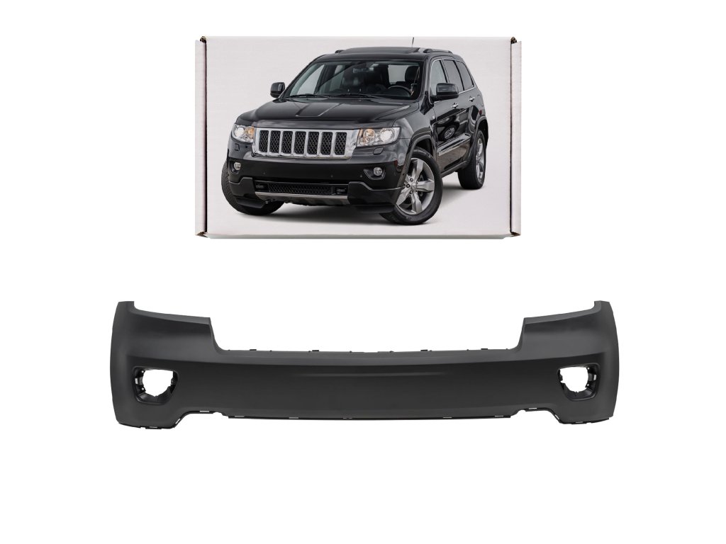 Přední horní nárazník, pro JEEP GRAND CHEROKEE IV (WK2) 2010-2014 (verze před faceliftem). Verze bez parkovacích senzorů PDC a bez ostřikovačů čelního skla. Nehodí se pro verzi SRT.