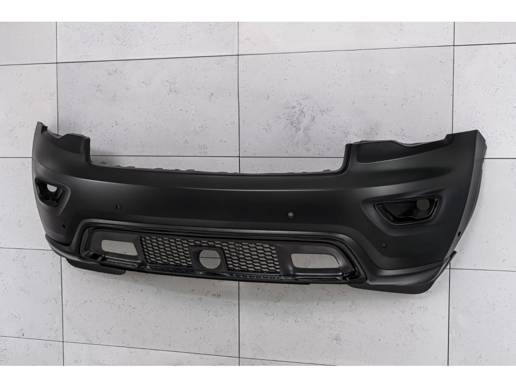 | černý Přední nárazník určený pro JEEP GRAND CHEROKEE IV (WK2) 2017-2021 (druhá faceliftová verze). Verze s otvory pro parkovací senzory PDC a bez otvorů pro ostřikovače čelního skla. Vhodné pro verze LAREDO, LIMITED, OVERLAND a TRAILHAWK. Sada obsahuje: