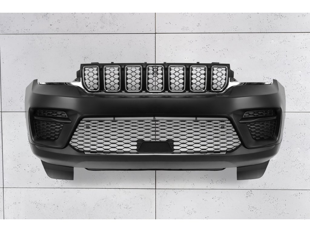 | Přední nárazník určený pro JEEP GRAND CHEROKEE V (WL) 2021+. Hodí se pouze pro verzi výbavy SUMMIT. Mřížka má otvor pro přední kameru. Hodí se pro verze pro USA i EU. Vhodná pro verze se spalovacím motorem / vznětovým motorem a hybridní verze. Součástí sady je:
