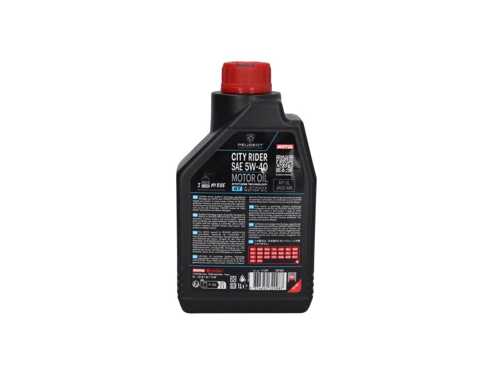 4T MOTUL City Rider 5W40 motorový olej 1l, API SL JASO MA Synthetic použitý pro první plněníDoplňkové parametry