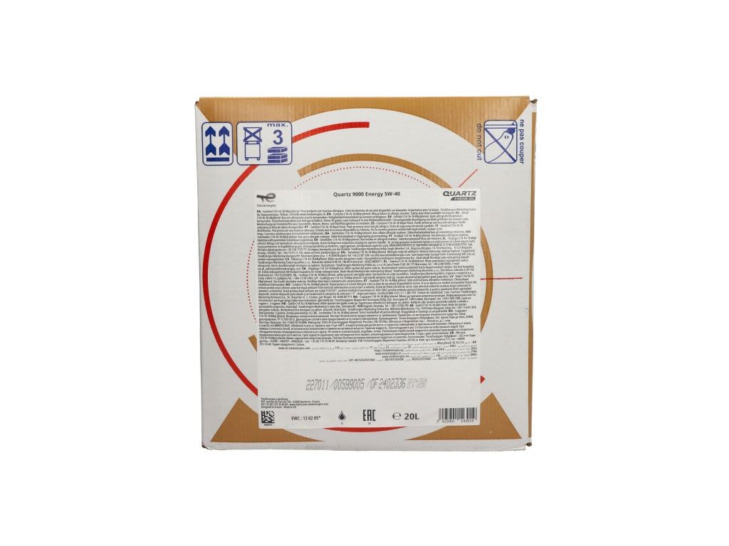 Motorový olej Quartz (20 l) 5W40 (BAG-IN-BOX (film) API CF SN ACEA A3 B4 CHRYSLER MS-12991 FIAT 9.55535 G2 FIAT 9.55535 M2 FIAT 9.55535 N2 FIAT 9.55535 Z2 MB 229.5 PORSCHE A40 VW 502.00Doplňkové parametry