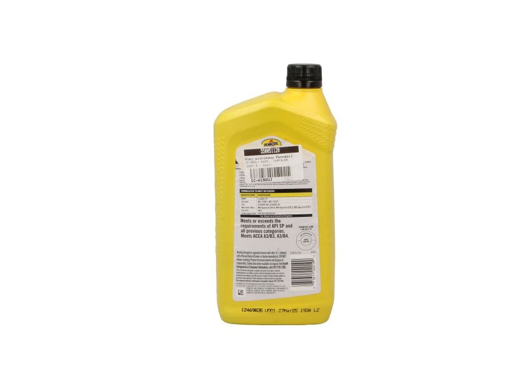 Pennzoil Platinum Engine Oil (0,946 l) 5W40 API SP ACEA A3 B3 B4 CHRYSLER MS-10727 CHRYSLER MS-10850 CHRYSLER MS-12991