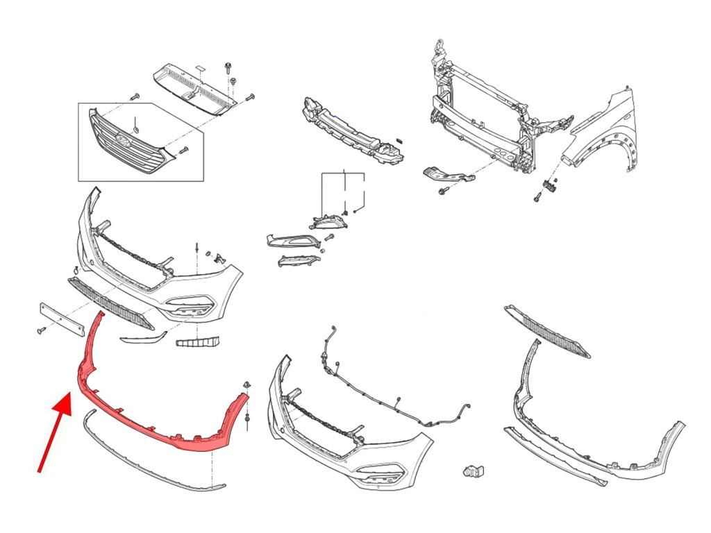 | Přední nárazník, spodní, pro HYUNDAI TUCSON III (TL) 2015-2018 (verze před faceliftem). Nabízíme také: