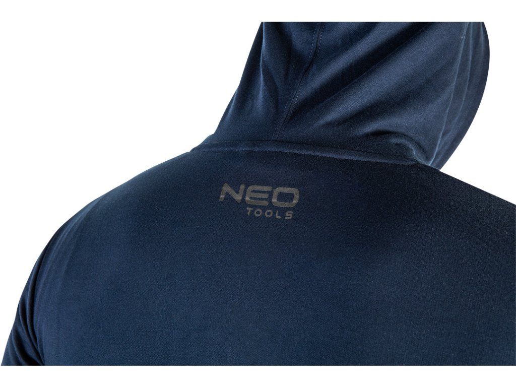 COMFORT mikina s kapucí, tmavě modrá, velikost L 81-513-L od NEO TOOLS je praktická mikina v tmavě modré barvě, vyrobená z tenké smyčkové pleteniny. Složení tkaniny je 60 % polyester a 40 % rayon a má gramáž 250 g/m2. Mikina má integrovanou dvoudílnou kapuci se stahovací šňůrkou, prostornou klokaní kapsu a žebrované manžety a spodní lem. Vnitřní úprava zipu s bavlněnou páskou přispívá k její odolnosti a estetické hodnotě. Mikina řady NEO TOOLS COMFORT má na přední straně žakárový štítek s logem a na krku tištěné logo. Díky jednoduchému, klasickému střihu a skutečnosti, že se jedná o vlastní design značky, těžko najdete lepší model lehké mikiny pro každodenní nošení, do práce i na dovolenou. Její kvalitu potvrzuje také certifikace CE.Doplňkové parametry