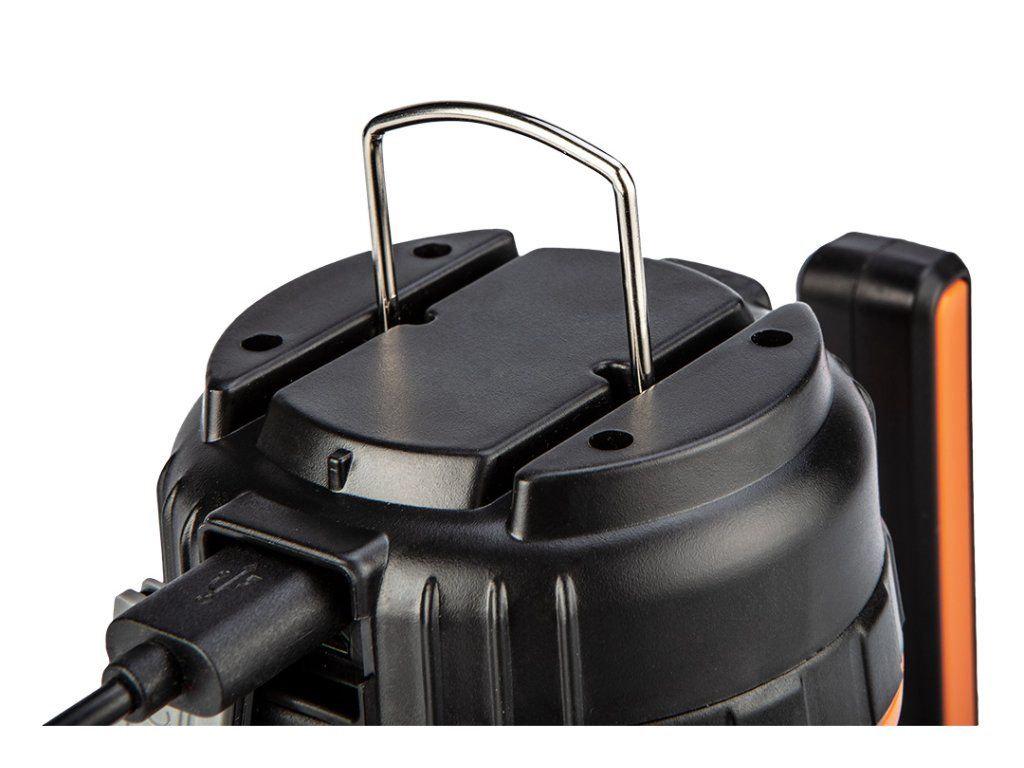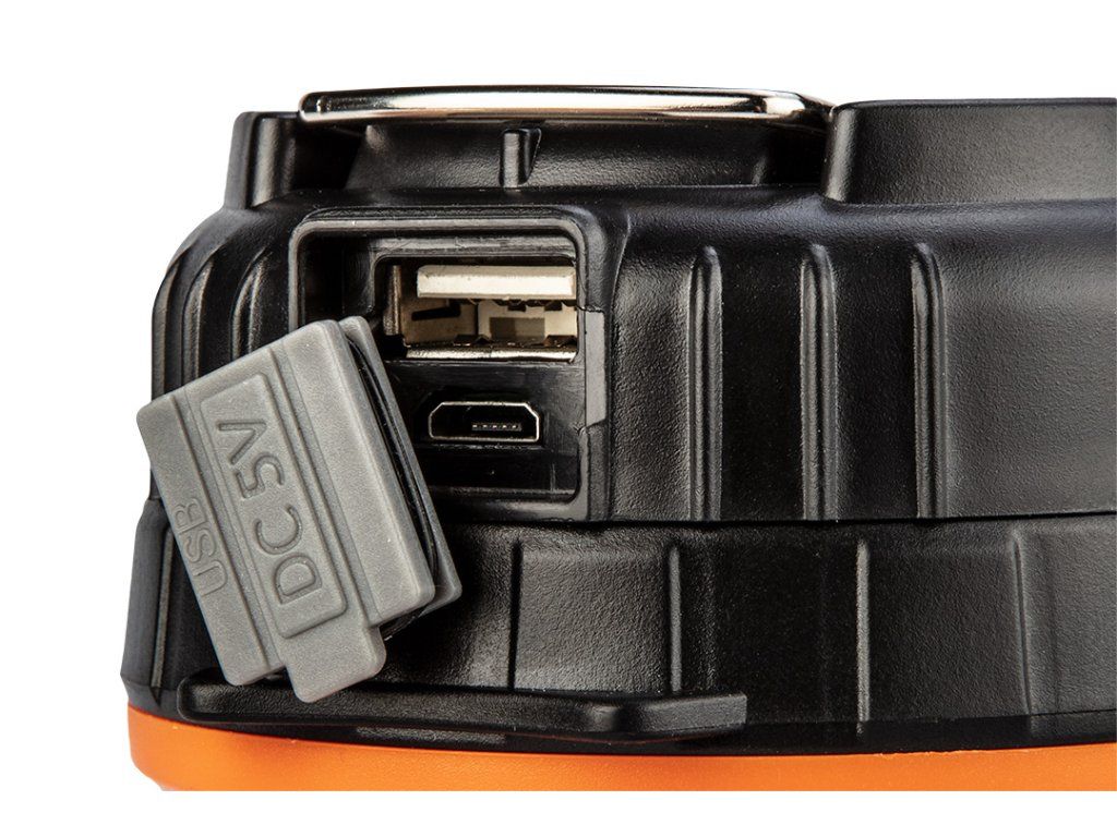 Nabíjecí kempingová lampa NEO je produkt 3 v 1 - lampa, svítilna a powerbanka. Má 4 funkce osvětlení: svítilna, boční světlo, červené boční světlo a červené boční stroboskopické světlo. Svítilna je vybavena LED diodami CREE T6 a LED SMD se světelným tokem 800 lumenů a výkonem 10 W. Svítilna je napájena přiloženou 3,7V Li-Ion baterií s kapacitou 1200 mAh.Doplňkové parametry