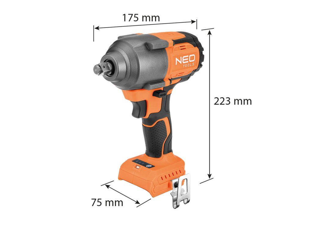 NEO TOOLS Bezkartáčový rázový klíč 18V, 850Nm, ½", Energy+, bez baterie bezkartáčová 850 Nm 32 m 2Ah