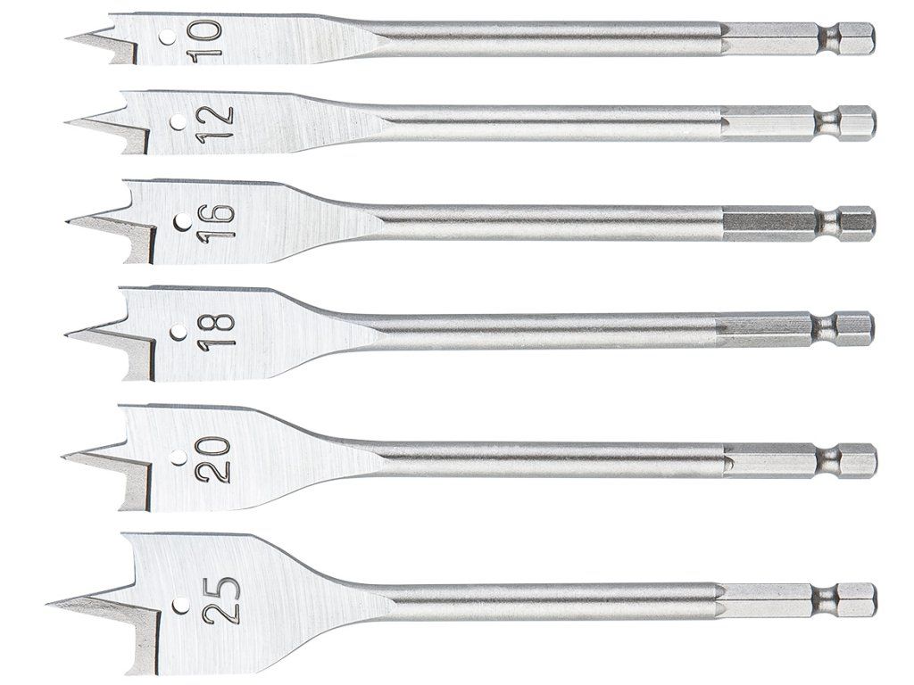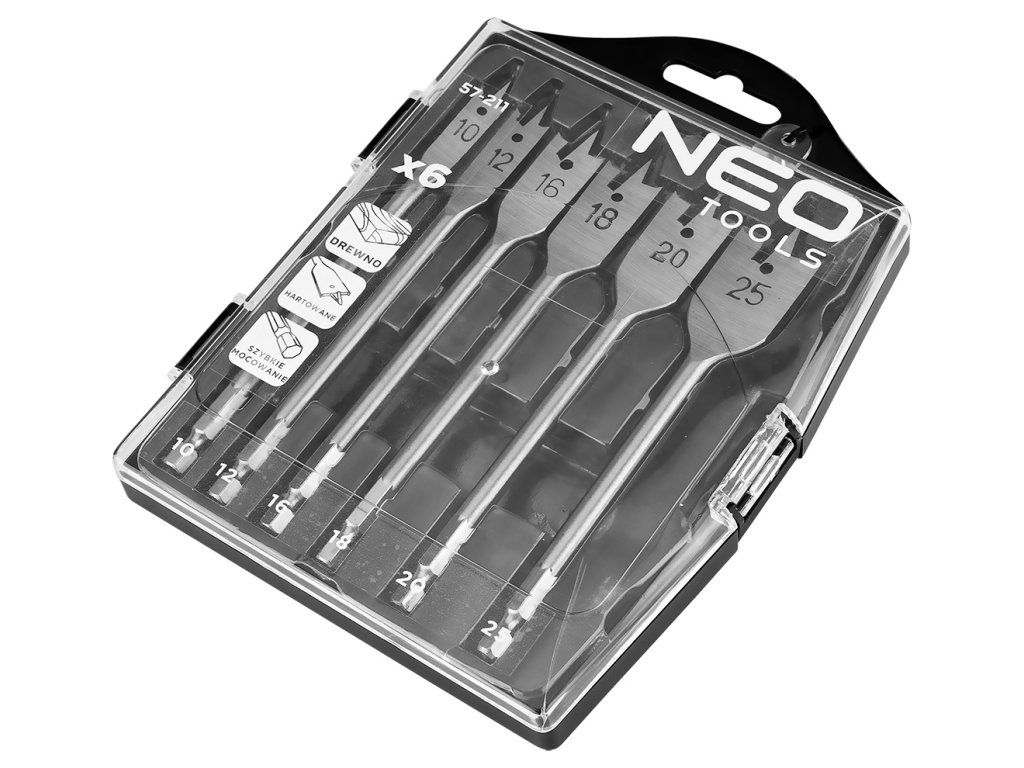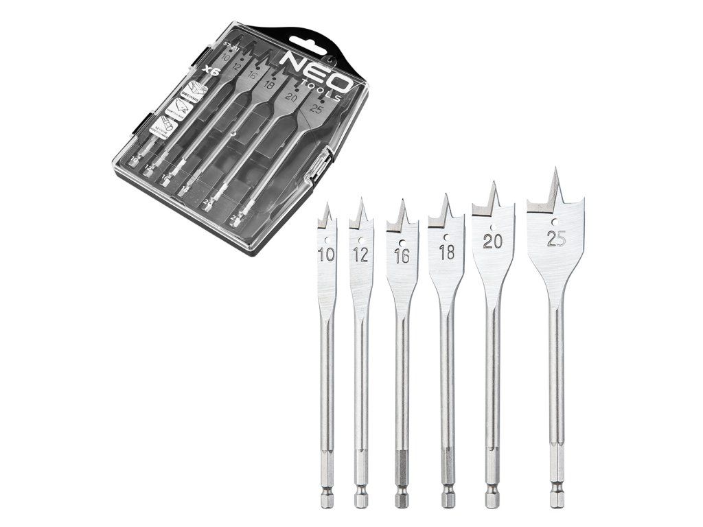 NEO TOOLS Čepelové vrtáky do dřeva, 10,12,16,18,20,25 mm, sada 6 ks. 10, 12, 16, 18, 20, 25 mm