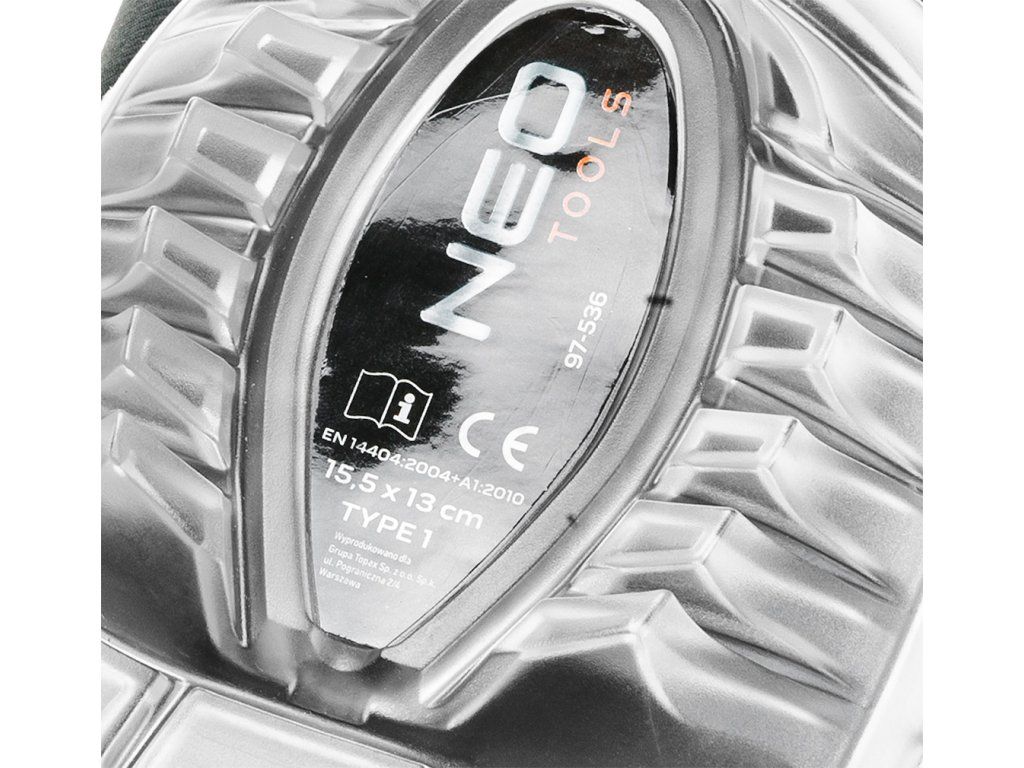 Kolenní chrániče NEO (ref. 97-536) poskytují ochranu kolen před pohmožděninami a odřeninami. Plastové překrytí vyrovnává nerovnosti, což výrazně zvyšuje pracovní komfort. Další ochranu zajišťují gelové vložky, které tlumí nárazy. Elastické neoprenové popruhy nastavitelné pomocí suchého zipu udržují kolenní chrániče na místě a zachovávají pohodlí při používání. Označení CE je zárukou bezpečnosti, která dokazuje, že výrobek splňuje všechny požadavky EU. Značka NEO splňuje očekávání profesionálů.Doplňkové parametry