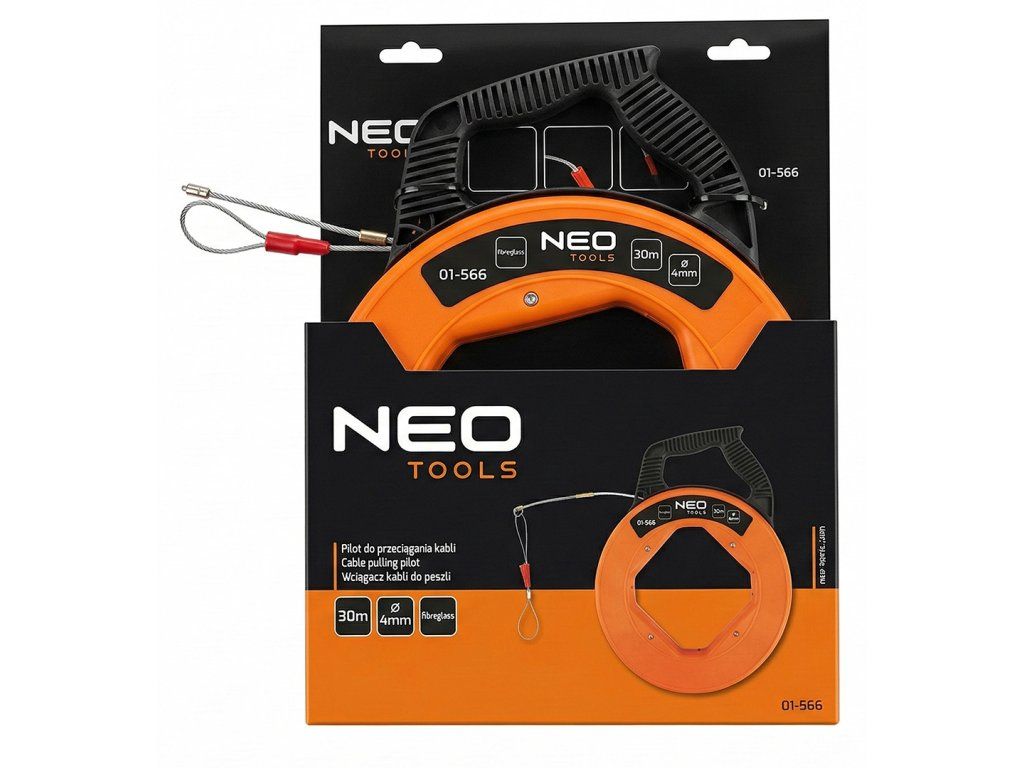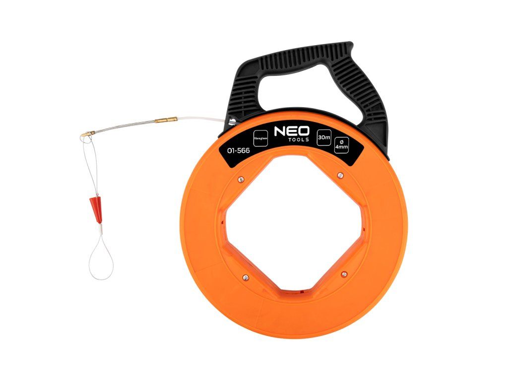 30m pilot pro vytahování kabelů 01-566 od společnosti NEO TOOLS je nástroj určený k vytahování kabelů v elektrických instalacích. Pilot o délce 30 m a průměru 4 mm je vyroben ze skleněných vláken, což umožňuje efektivní vedení kabelů v instalačních kanálech. Tělo je vyrobeno z plastu ABS a je vybaveno rukojetí pro přenášení a ručním navíječem pro snadnou manipulaci a skladování. Použitá koncovka pro uchycení kabelu umožňuje pevné držení kabelu na místě během tažení. Pilot pro vytahování kabelů NEO TOOLS umožňuje rychlou práci a podporuje úsporu času při instalačních úkonech prováděných elektrikáři.Doplňkové parametry