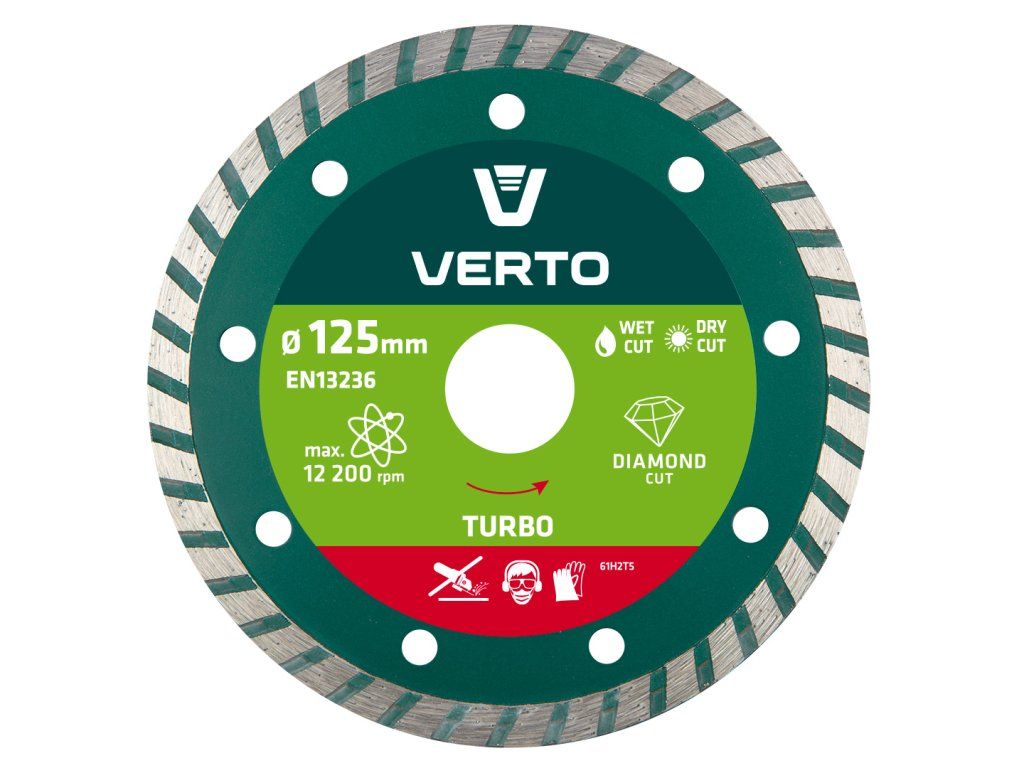 Diamantový kotouč turbo VERTO pro účinné řezání betonu, železobetonu, žuly, mramoru, kamene, cihly, atd. Značka VERTO nabízí sortiment elektrického nářadí a příslušenství pro každého domácího kutila.