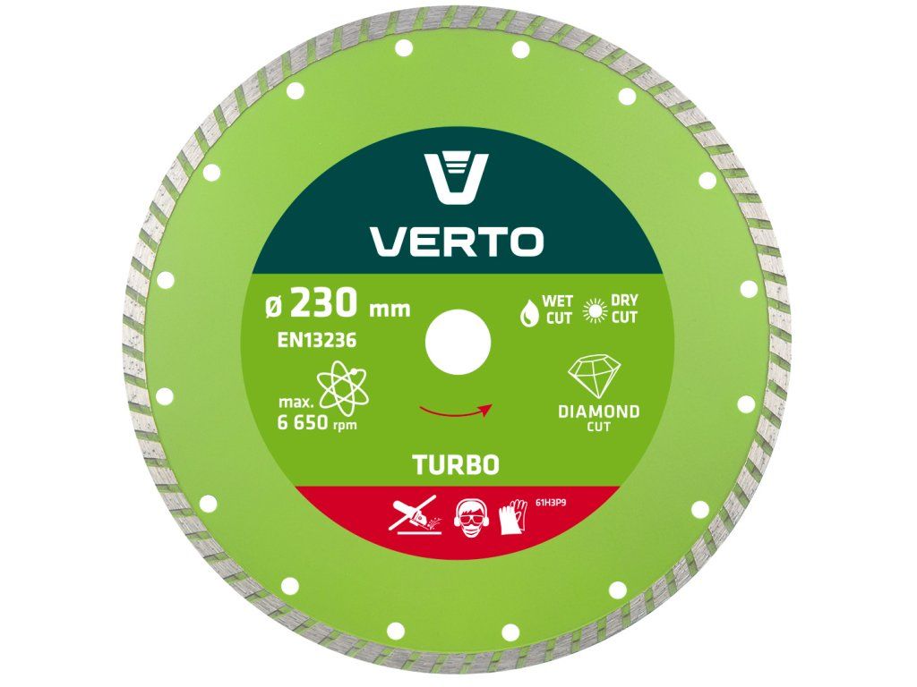 Diamantový kotouč turbo VERTO pro účinné řezání betonu, železobetonu, žuly, mramoru, kamene, cihly, atd. Značka VERTO nabízí sortiment elektrického nářadí a příslušenství pro každého domácího kutila.