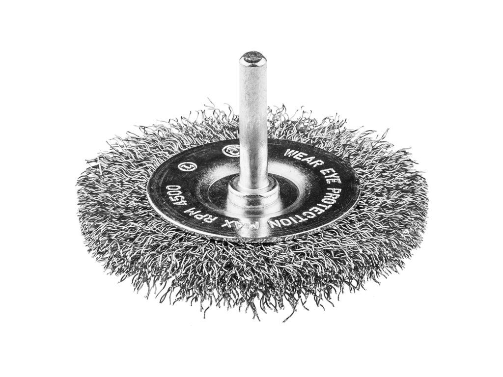 Drátěný kartáč 75 mm, krimpovaný drát, INOX, se stopkou 6 mm