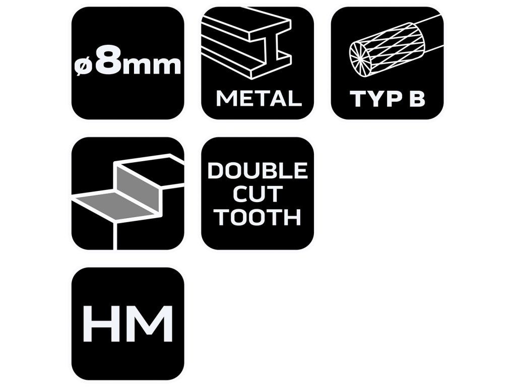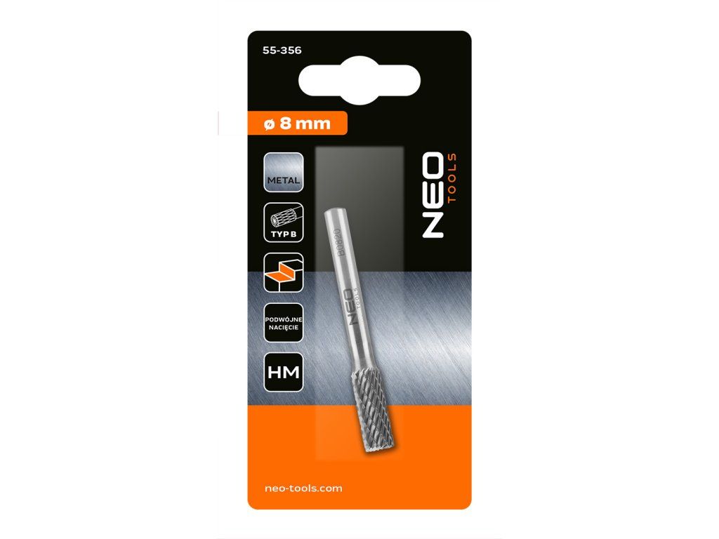 NEO TOOLS Fréza na kov HM, typ B (válcová s břity nahoře), 8 x 20 mm, stopka 6 x 45 mm 8 mm