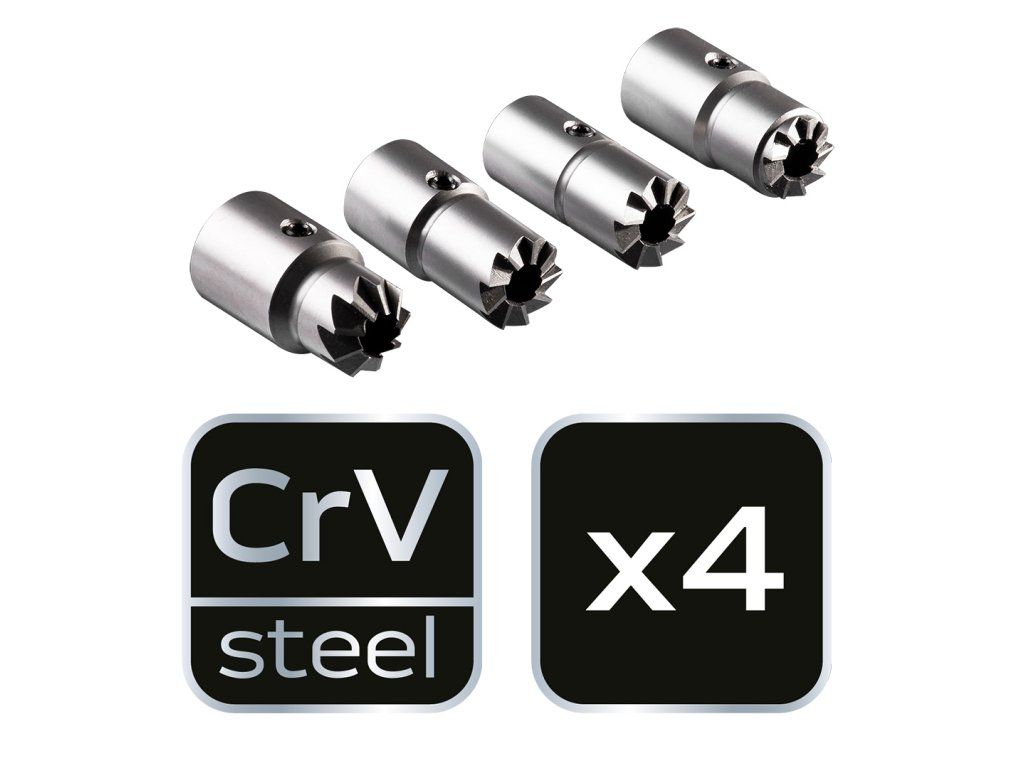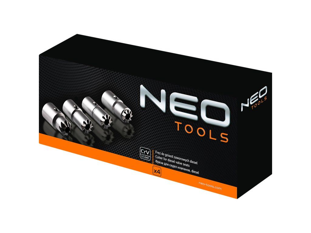Řezák sedel ventilů pro dieselové motory značky NEO 11-218 je sada, která se skládá z: Univerzální plochá fréza 15 mm; plochá fréza 17 mm pro vstřikovače Delphi/Bosch (BMW/PSA/Renault/Ford); plochá fréza 19 mm pro vstřikovače Bosch (Mercedes CRD); úhlová fréza 19 mm pro vstřikovače Fiat/Iveco a šestihranný pilotní kolík 19 mm. Vyrobeno z vysoce kvalitní chrom-vanadiové oceli. Vše je nabízeno v praktickém kufříku pro snadné skladování a přepravu nářadí. Kompaktní sada doporučená pro autoservisy a uživatele motorových vozidel.Doplňkové parametry