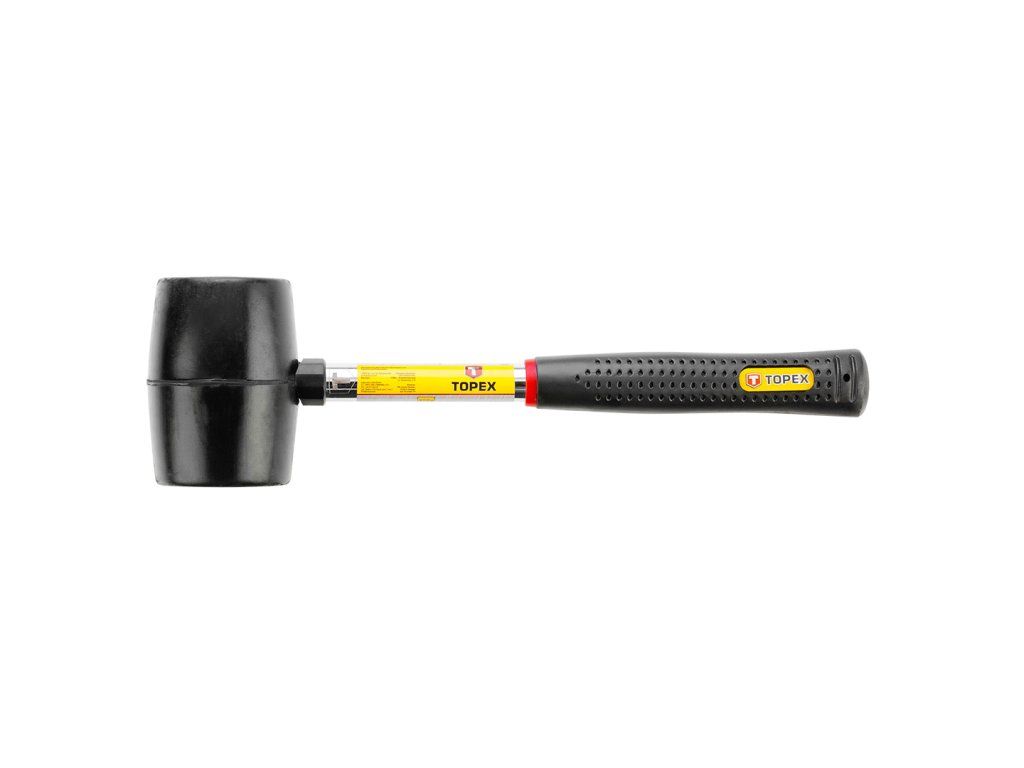 Gumové kladivo TOPEX (ref. 02A305) o hmotnosti 450 g se používá především při stavebních a dokončovacích pracích, protože guma nepoškodí křehký materiál. Rukojeť je vyrobena z kalené oceli. Ergonomická pogumovaná rukojeť dobře padne do ruky a nevyklouzává, což zajišťuje pohodlnou práci. Značka TOPEX je určena pro kutily.Doplňkové parametry