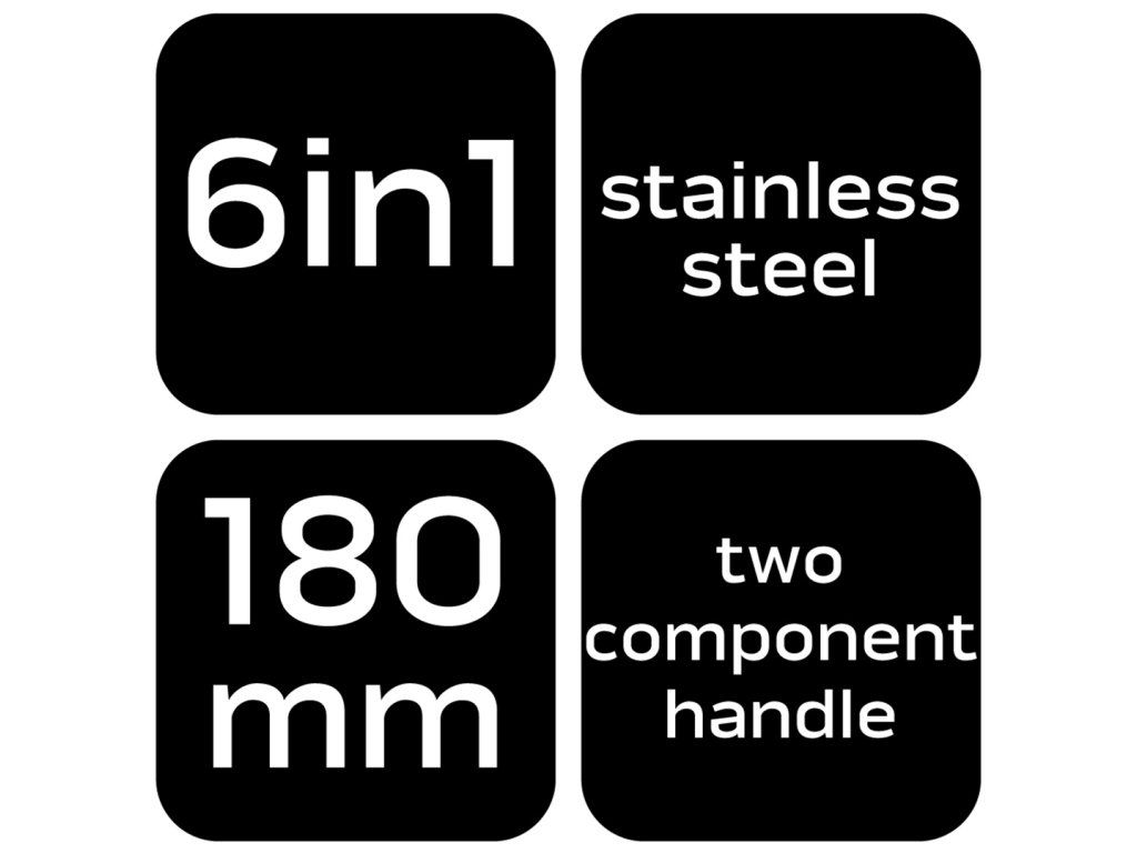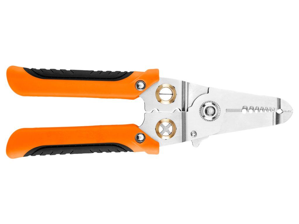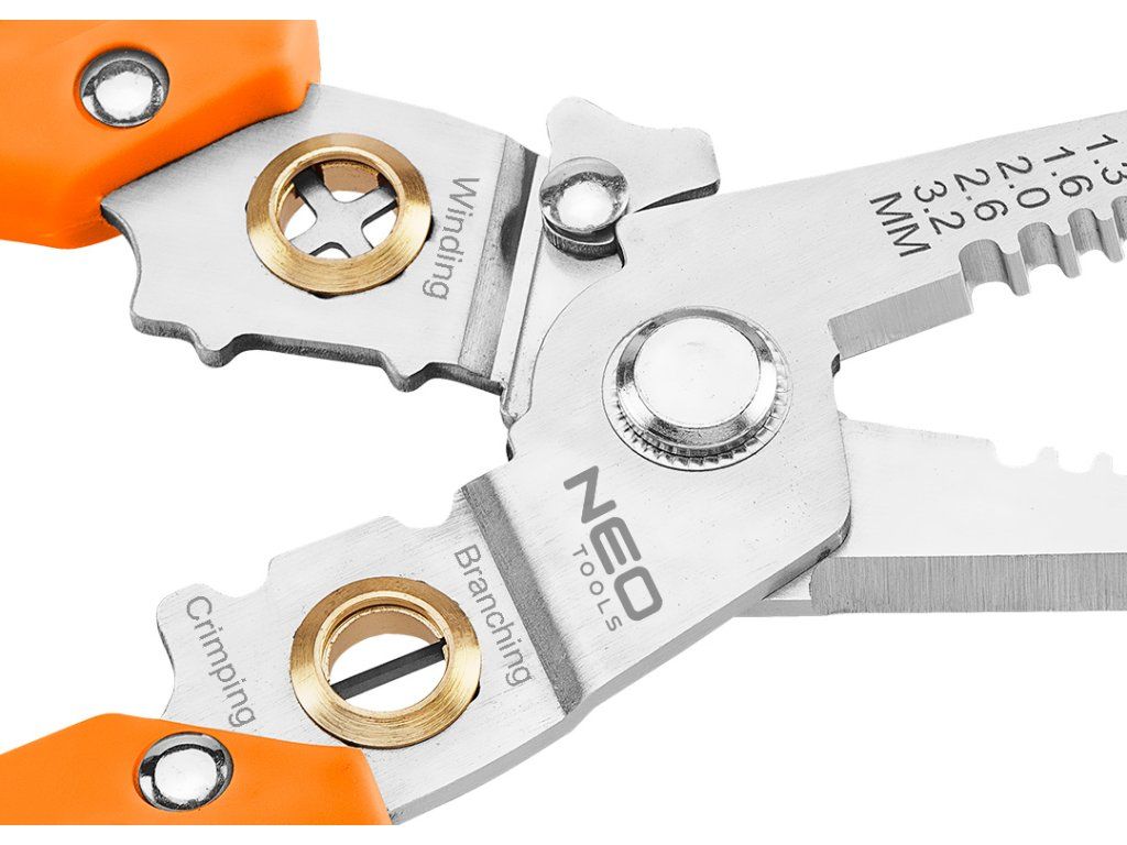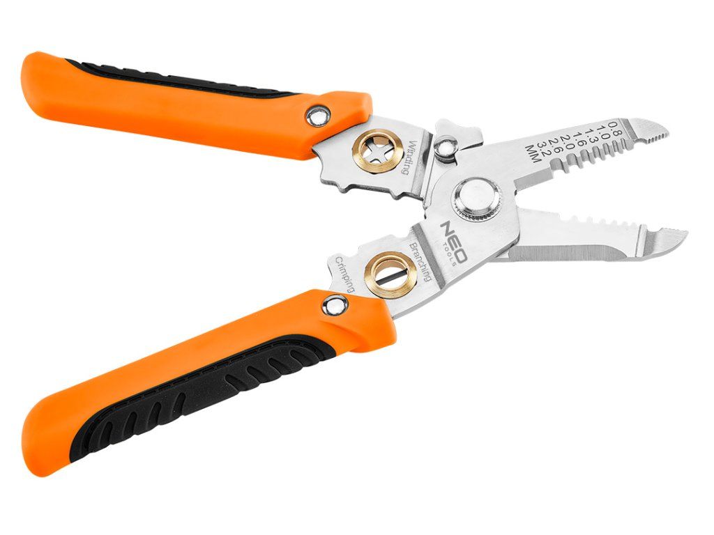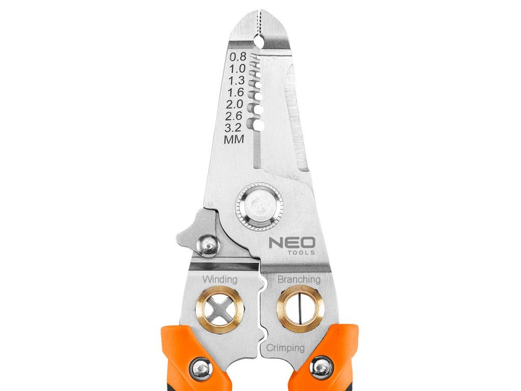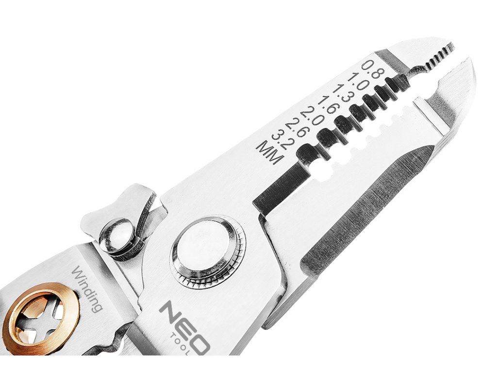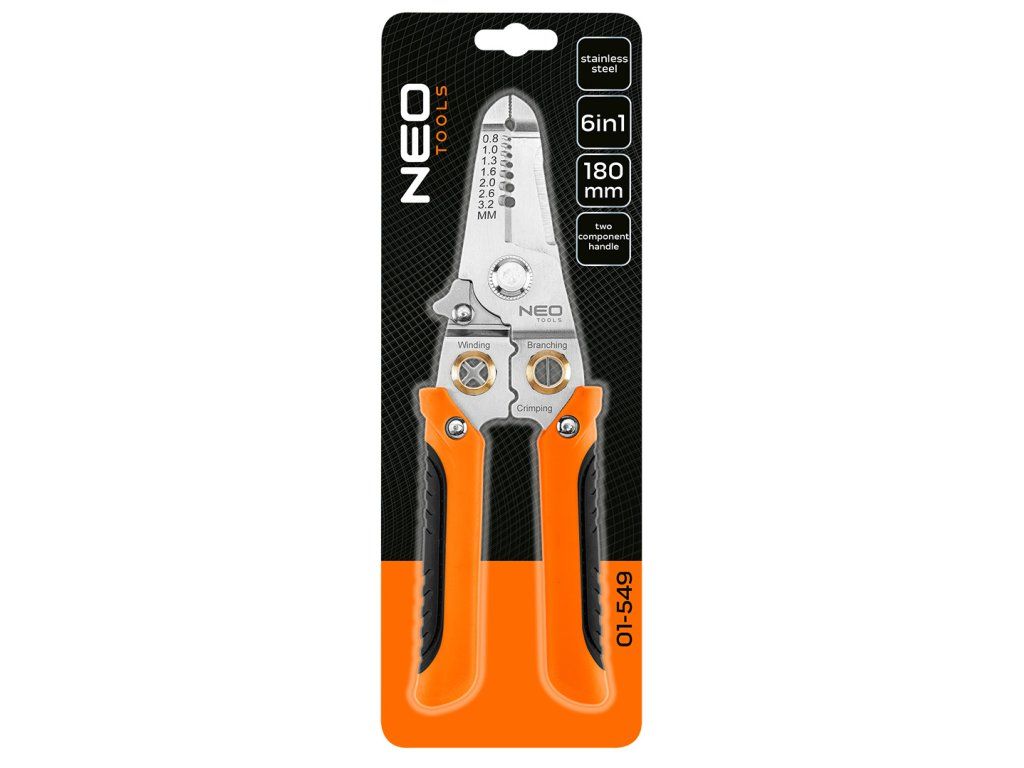 Kleště na izolaci 6 v 1, 01-549 od společnosti NEO TOOLS, jsou víceúčelovým nástrojem, který nabízí funkci odizolování izolace o průřezu od 0,8 do 3,2 mm2. S jejich pomocí můžete snadno stříhat nebo oddělovat vodiče. Kleště NEO TOOLS umožňují krimpování konektorů, kroucení vodičů a slouží k jejich přidržení na místě, čímž zvyšují komfort práce. Rukojeť nářadí se skládá ze dvou částí. Její praktická délka 180 mm, stejně jako pojistka proti otevření a otevírací pružina, činí kleště nepostradatelnými při práci profesionálů i hobbyistů. Konstrukce z nerezové oceli přispívá k jejich odolnosti.Doplňkové parametry