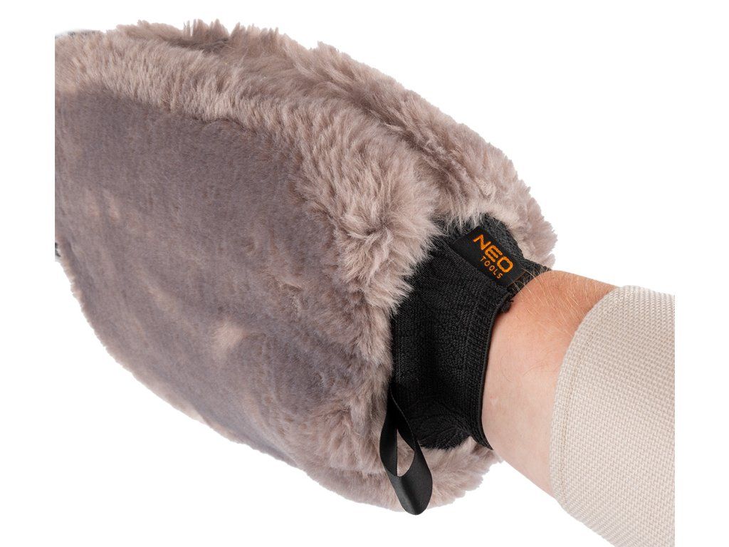 Jemná rukavice na mytí aut 11-459 od společnosti NEO TOOLS je rukavice o rozměrech 28 × 20 cm. Je vyrobena ze 100% polyesteru. Její konstrukce je oboustranná, což zvyšuje počet aplikací. Rukavice NEO TOOLS má velmi jemná vlákna a je odolná vůči chemikáliím. Je určena k mytí karoserií a snižuje riziko poškrábání povrchu.Doplňkové parametry