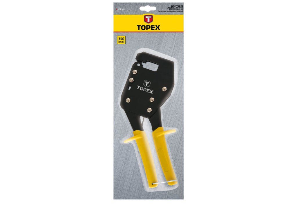 TOPEX kleště pro tavení profilů (ref. 43E101) 260 mm dlouhé. Lisováním plechu vytvářejí trvanlivé a stabilní spojení profilů, které tvoří konstrukci pro stavbu příček a podhledů ze sádrokartonových desek. Použitím kleští ušetříte šrouby. Pohodlí při práci zvyšují pogumované protiskluzové rukojeti. Značka TOPEX je určena pro kutily.Doplňkové parametry