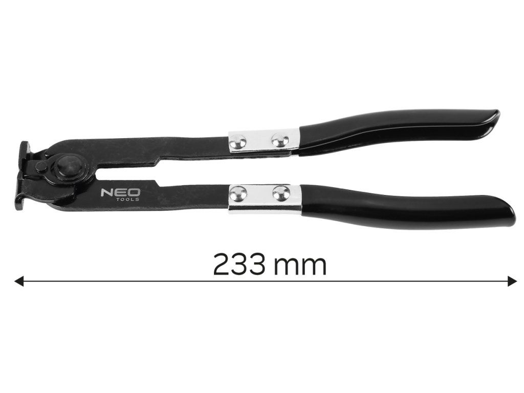 Svěrné kleště 11-223 od společnosti NEO jsou nástrojem pro upínání gumových hadic v automobilech (chladicí systém, palivový systém, klimatizační systém). Vyznačují se praktickým gumovým obložením rukojeti. Kleště jsou rovněž kompatibilní s nejčastěji používanými kabelovými páskami v automobilovém průmyslu.Doplňkové parametry