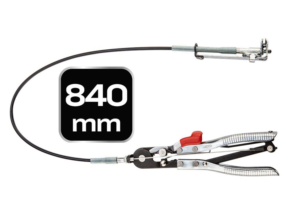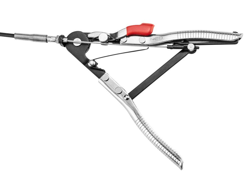 Kleště na stahování kabelů 11-221 od společnosti NEO jsou nástrojem pro instalaci a demontáž stahovacích pásků na těžko přístupných místech, s délkou pružné části 630 mm a délkou rukojeti 210 mm. Je vybaven rozsahem stisku 0 až 45 mm a automatickým blokovacím mechanismem pro snadnou manipulaci s pružinovými svorkami. Kleště jsou rovněž kompatibilní s nejčastěji používanými páskami v automobilovém průmyslu. Splňuje certifikaci TÜV M+T.Doplňkové parametry