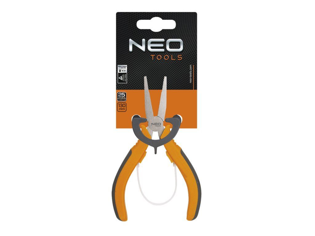 Přesné ploché kleště NEO (ref. 01-105) o rozměru 130 mm. Dlouhé, ploché, vroubkované čelisti zajišťují pevný úchop. Odolná nylonová pružina usnadňuje práci. Ergonomická rukojeť z dvojitého materiálu pro větší pohodlí. Kvalita nářadí potvrzená certifikátem TÜV a 25letou zárukou výrobce. Značka NEO splňuje očekávání profesionálů.Doplňkové parametry