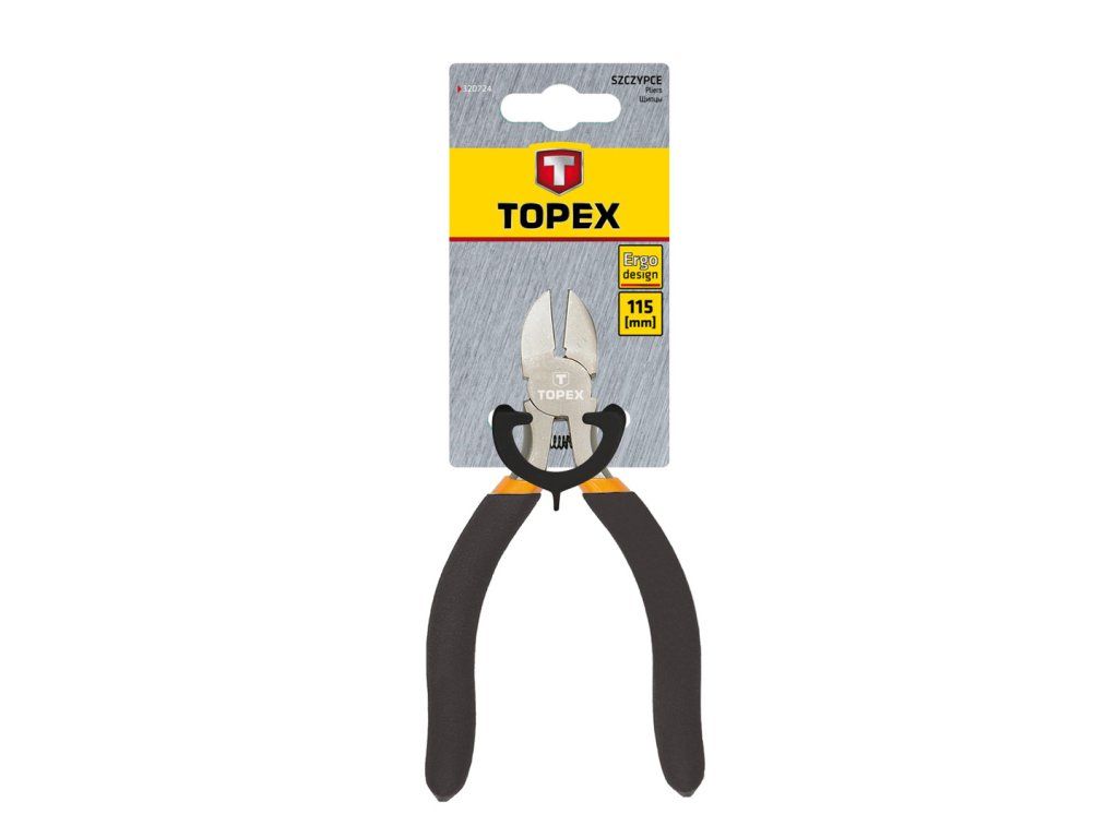 Přesné boční frézy TOPEX (č. 32D724) o délce 115 mm. Vyrobeno z kalené oceli, navíc s indukčně kalenými řeznými plochami. Ergonomické rukojeti pokryté protiskluzovým materiálem zajišťují pohodlí a bezpečnost při práci. Výrobek se dokonale přizpůsobí tvaru ruky. Kleště mají pružinu, která zajišťuje, že se ramena odrážejí, což zvyšuje pohodlí při práci s nástrojem. Značka TOPEX je určena pro kutily.Doplňkové parametry