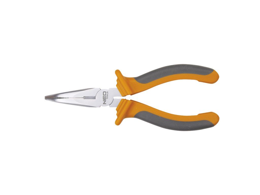 Prodloužené zahnuté kleště NEO vyrobené dle normy DIN 5745. Čelisti z indukčně kalené oceli (55-60 HRC) zahnuté v úhlu 45° zaručují pevné uchopení a účinné řezání. Dvousložková ergonomicky tvarovaná rukojeť zvyšuje komfort použití. Kvalitu nářadí potvrzuje certifikát TÜV a záruka výrobce na 25 let. Značka NEO splňuje očekávání profesionálů.Doplňkové parametry