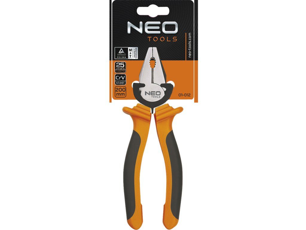 Univerzální kleště NEO (č. 01-012) o velikosti 200 mm, vyrobené podle DIN 5746. Čelisti z vysoce kvalitní CS oceli, indukčně kalené (55-60 HRC) zajišťují účinné stříhání a tvarování tvrdých drátů. Ergonomická rukojeť z dvojího materiálu zvyšuje uživatelský komfort. Kvalita nářadí potvrzená certifikátem TÜV a 25letou zárukou výrobce. Značka NEO splňuje očekávání profesionálů.Doplňkové parametry