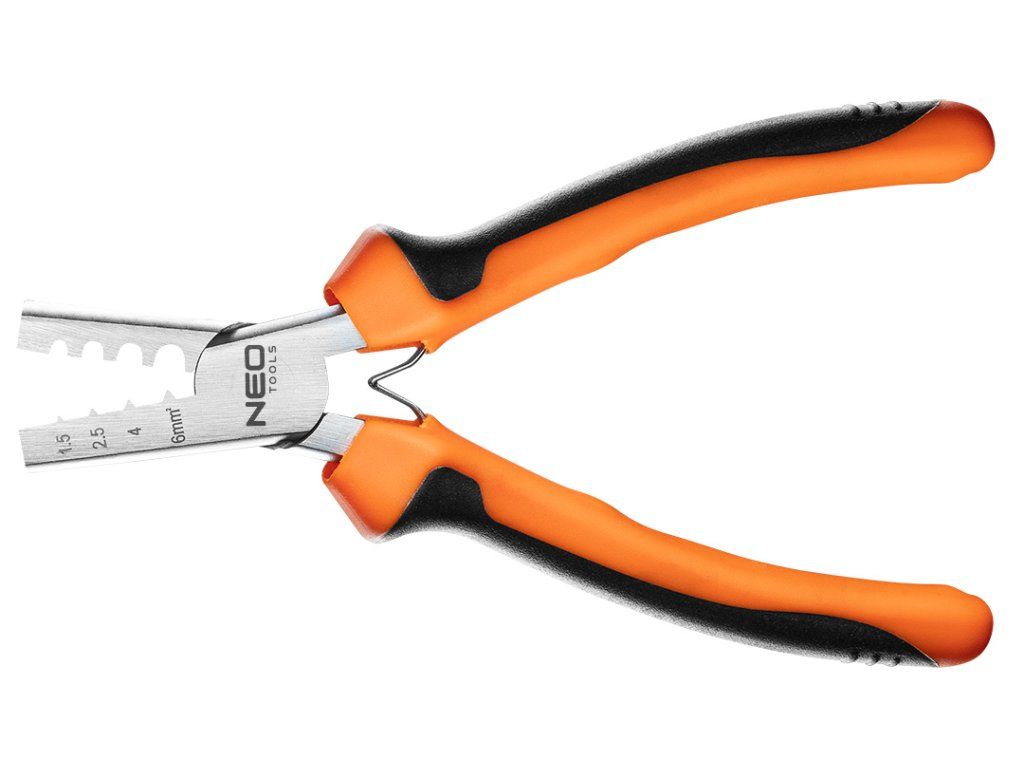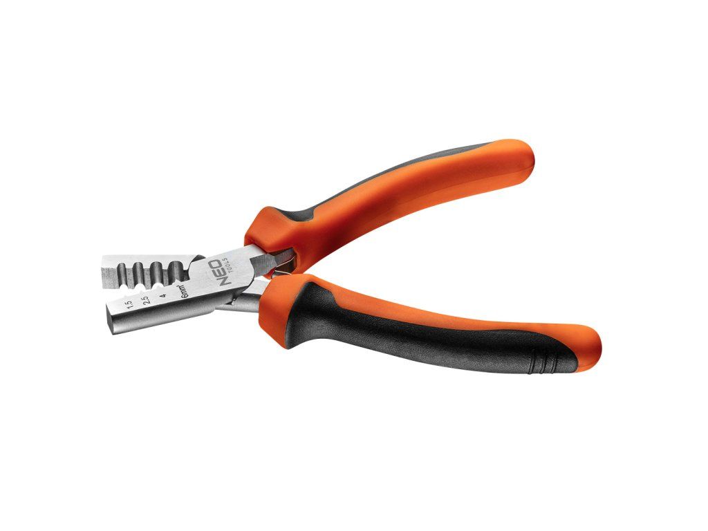 Krimpovací kleště (ref. č. 01-533) NEO délka 140 mm. Pro koncovky v rozmezí 1.5-6 mm² (23-13 AWG). Čelisti jsou vyrobeny z tvrzené uhlíkové oceli. Dvoukomponentní rukojeť z měkkého, neklouzavého PVC zvyšuje pohodlí při práci. Rozpínací plíšky usnadňují práci.Doplňkové parametry