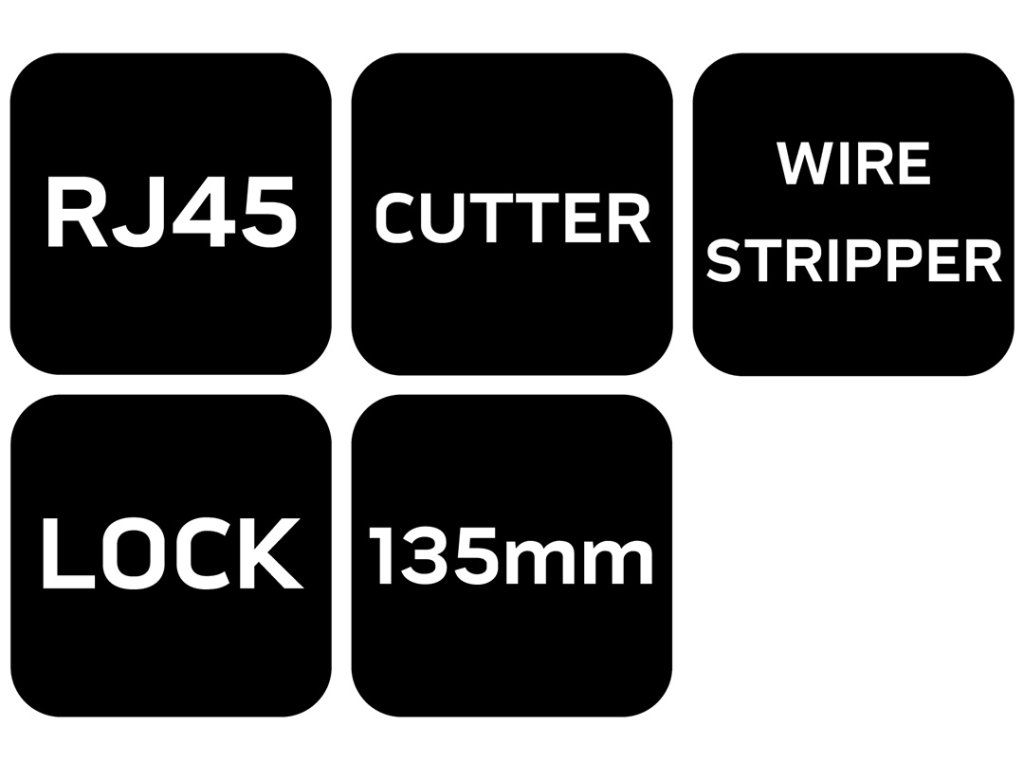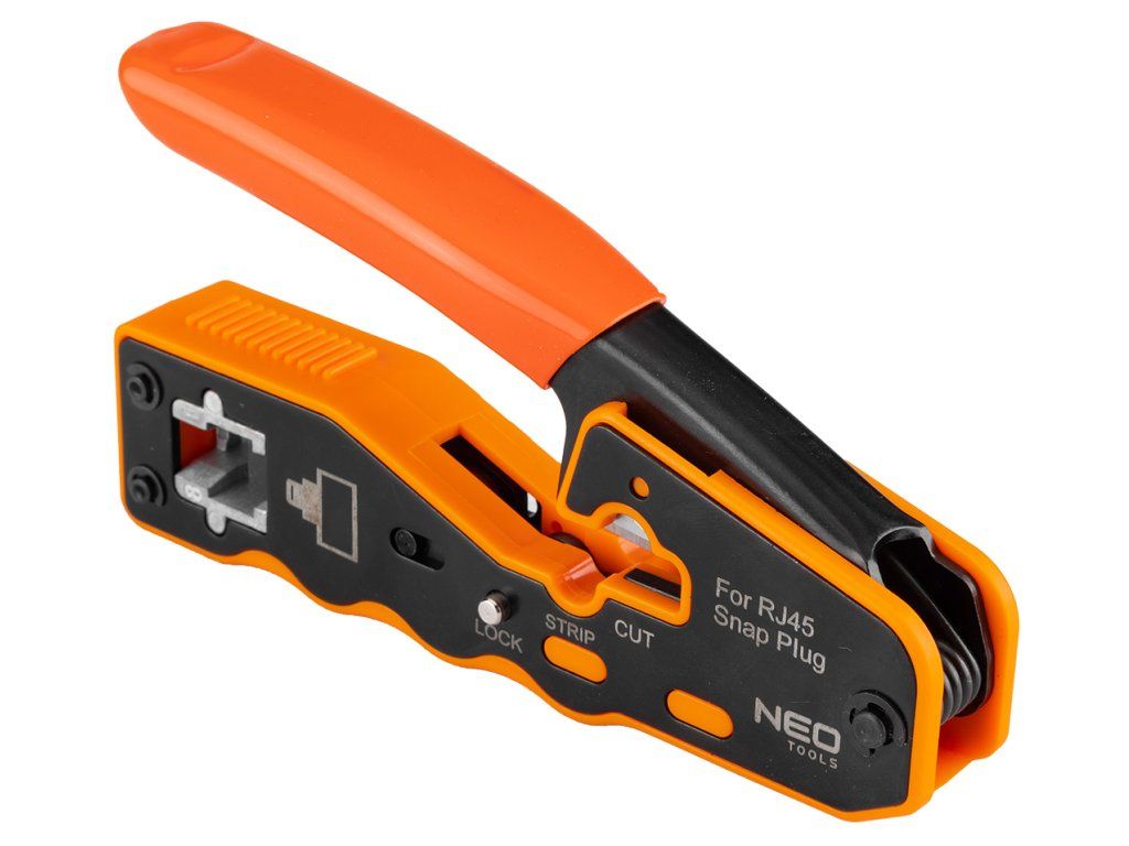 Kleště pro lisování průchozích konektorů RJ45, 01-564 od společnosti NEO TOOLS, se vyznačují délkou 135 mm. Jsou vyrobeny z uhlíkové oceli a jejich rukojeti jsou z odolného plastu. Jsou vybaveny štípacími kleštěmi, odizolovačem vodičů a pojistkou ostří. Nářadí značky NEO TOOLS je určeno ke krimpování internetových a telefonních kabelů. Osvědčí se při mnoha úkolech.Doplňkové parametry