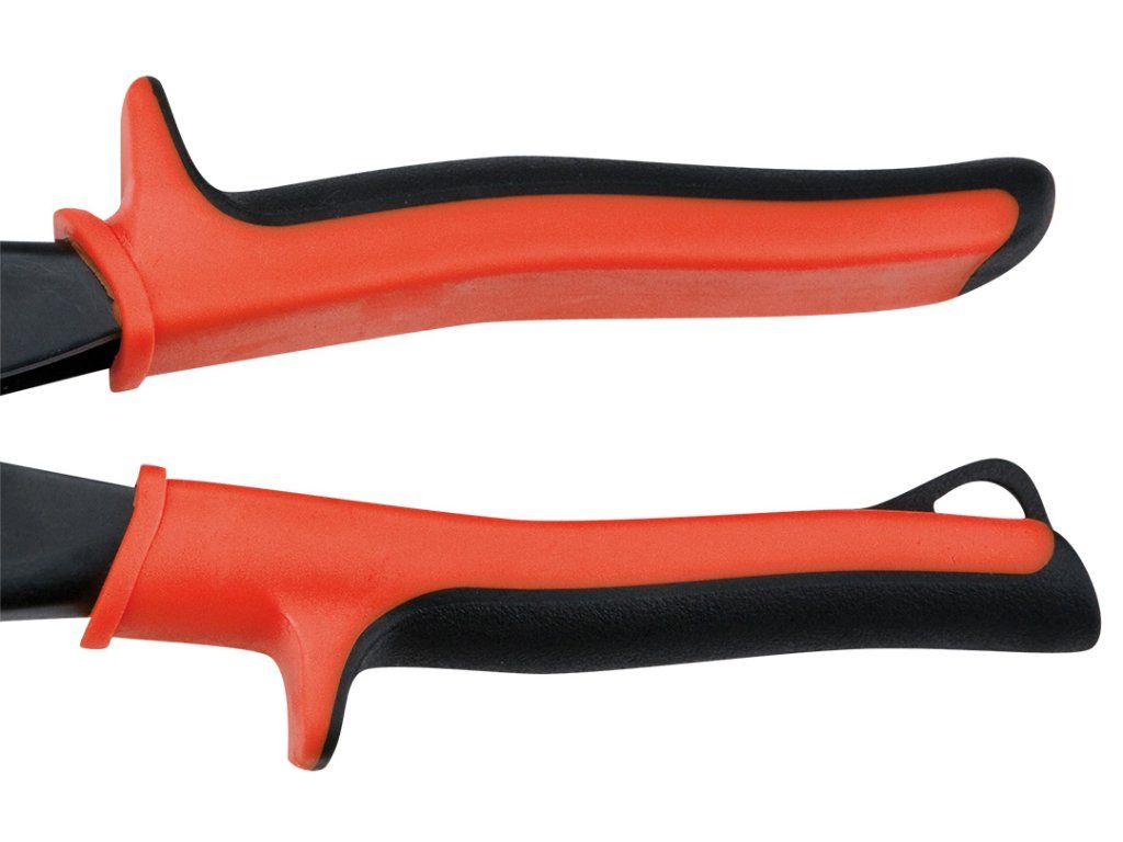 Nůžky na plech NEO (č. 31-063) o délce 240 mm. Tělo je vyrobeno z vysoce kvalitní chrom-molybdenové oceli. Konstrukce zabraňuje sklouznutí řezaného materiálu během práce. Díky protiskluzovým podložkám na rukojeti, které chrání ruku uživatele, výrobek pevně drží v ruce a neklouže. Ostré hrany čelistí snadno a hladce řežou plech. Certifikát TÜV Rheinland je zárukou vysoké kvality a spolehlivosti výrobku. Značka NEO splňuje očekávání profesionálů.Doplňkové parametry