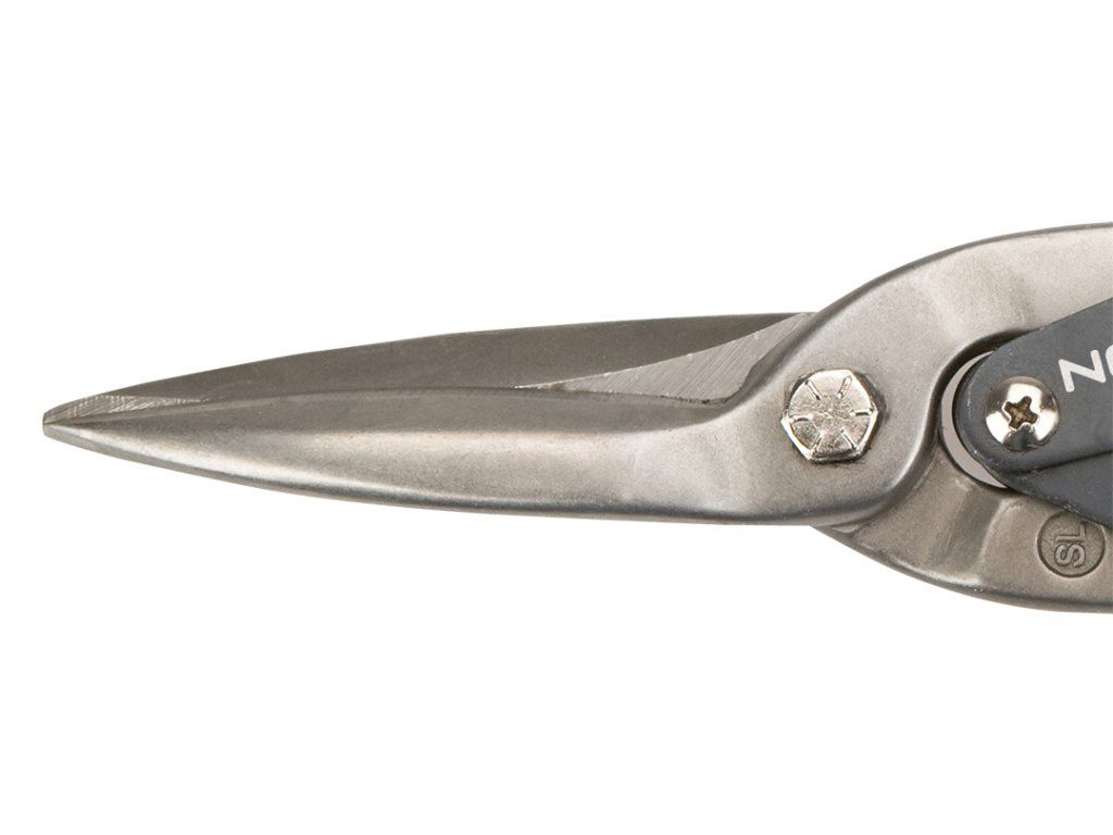 Podlouhlé nůžky na plech NEO (č. 31-061), délka 290 mm, pro stříhání oceli do 0,6 mm, kalené oceli do 0,3 mm, hliníku do 1 mm, mědi do 1,1 mm a plastu do 5 mm. Tělo je vyrobeno z vysoce kvalitní chrom-molybdenové oceli. Indukčně kalené čepele pro dlouhou životnost. Konstrukce zabraňuje sklouznutí řezaného materiálu během práce. Díky protiskluzovým podložkám na rukojeti výrobek pevně drží v ruce a neklouže. Ostré hrany čelistí hladce a snadno proříznou plech. Certifikát TÜV Rheinland je zárukou vysoké kvality a spolehlivosti výrobku. Značka NEO splňuje očekávání profesionálů.Doplňkové parametry