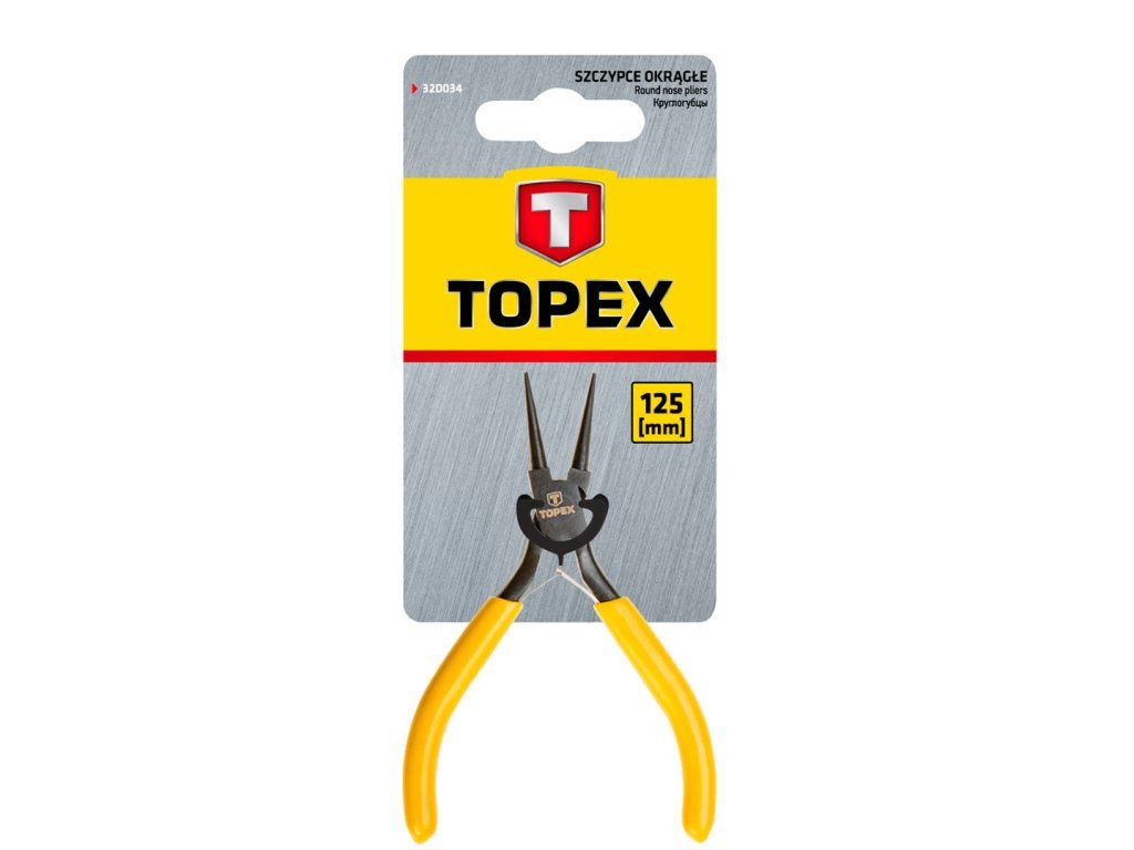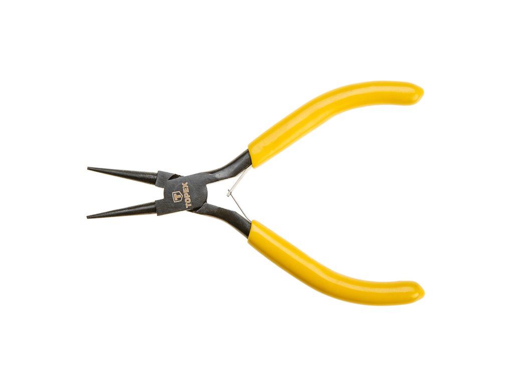 Přesné kulaté kleště TOPEX (ref. 32D034) z kalené uhlíkové oceli. Ergonomické rukojeti potažené protiskluzovým materiálem zajišťují pohodlí a bezpečnost při práci. Výrobek se dokonale přizpůsobí tvaru ruky. Značka TOPEX je určena pro kutily.Doplňkové parametry