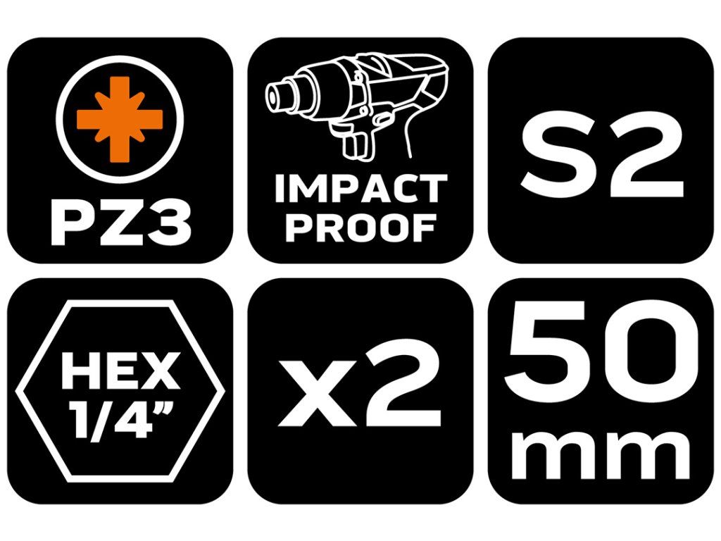 NEO TOOLS Rázové bity PZ3 x 50 mm, 2 ks.