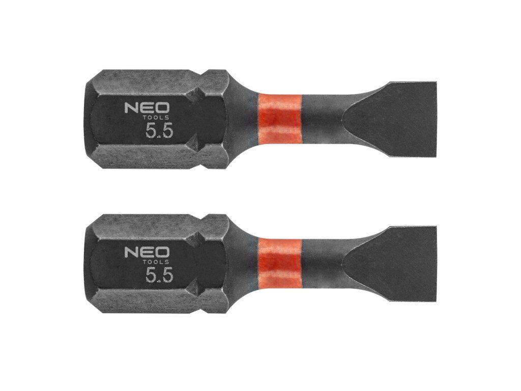 NEO TOOLS Rázové bity SL5,5 x 25 mm, 2 ks.