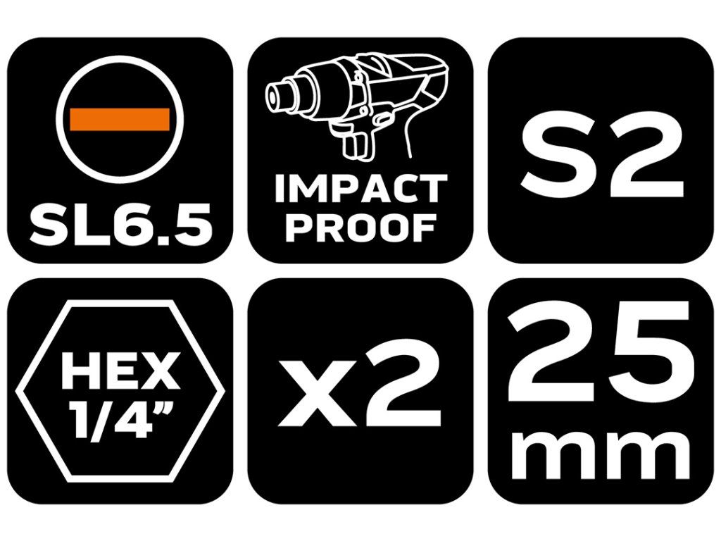 NEO TOOLS Rázové bity SL6,5 x 25 mm, 2 ks.