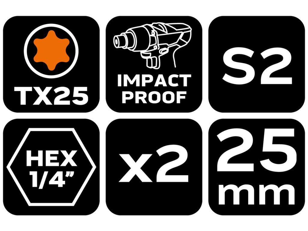 NEO TOOLS Rázové bity TX25 x 25 mm, 2 ks. 2. V
