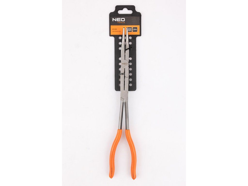 Dlouhé rovné kleště CRV 01-292 s dvojitým kloubem od společnosti NEO TOOLS jsou 33 cm dlouhé kleště. Jsou vyrobeny z oceli CrV a vyznačují se dvěma klouby, které jim umožňují přenášet velká zatížení a zvyšují pracovní rozsah. Rukojeti jsou potaženy plastem z PVC. Tvar kleští NEO TOOLS a dvojitý kloub umožňují přístup do těžko přístupných míst. Nářadí se osvědčí v mnoha situacích.Doplňkové parametry